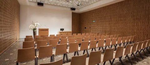 Das flexible Raumkonzept des Careum Auditoriums ermöglicht die Aufteilung in zwei eigenständige Räume. Die kleinere Saalhälfte bietet mit 207 Quadratmetern Platz für bis zu 200 Personen – ideal für Workshops, Networking-Events oder Meetings mit persönlicher Atmosphäre.