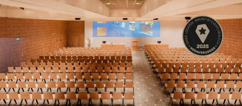 Unser Auditorium verfügt über eine klare, rechteckige Raumstruktur und eine Deckenhöhe zwischen 4,4 und 5 Metern – ideal für Konferenzen, Tagungen und Kongresse.